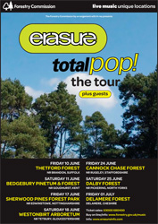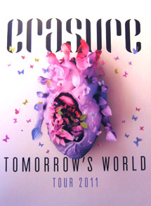 2011 ERASURE - TOTAL POP & FOREST TOUR March 25 - Ultra Festival - Bicentennial Park, Miami Florida USA May 14 - Mute Short Circuit Electronic Music Festival Yazoo: Nobody's Diary, Ode To Boy, Don't Go Erasure: Hideaway, Fingers & Thumbs, Heavenly Action, Always, Ship Of Fools, Victim Of Love, Breathe, Chains Of Love, Sometimes, Blue Savannah, A Little Respect Assembley/Feargal Sharkey: Never Never ----- June 9 - The Fleece pub, Bristol UK (small fan-club gig) June 10 - Thetford Forest, Brandon, Suffolk UK July 16 - Slottsfjell Festival , Tonsberg NORWAY July 17 - Guildfest Festival , Guidford UK August 4 - Unique Palace, Brasilia BRAZIL August 6 - Citibank Hall, Rio de Janeiro BRAZIL August 7 - Chevrolet Hall , Belo Horizonte BRAZIL August 9 - Credicard Hall, Sao Paulo BRAZIL August 11 - Pepsi on Stage, Porto Alegre BRAZIL August 13 - Espacio Riesco, Santiago CHILE August 15 - Luna Park, Buenos Aires ARGENTINA August 16 - Luna Park, Buenos Aires ARGENTINA August 18 - Explanada del Monumental, Lima PERU August 20 - Centro de Convenciones, Guayaquil ECUADOR August 24 - Metropolitan Theatre, Mexico City MEXICO August 25 - Metropolitan Theatre, Mexico City MEXICO Setlists include: Hideaway, Breath of Life, Fingers & Thumbs, Heavenly Action, Always, Push Me Shove Me, Ship of Fools, Victim of Love, Breathe, Chains of Love, Sometimes, When I needed You, Drama!, Save Me, Love to Hate You, Blue Savannah, Knocking On Your Door, Who Needs Love Like That, Chorus, Oh L'Amour, A Little Respect, Stop! Sophie Ellis-Bextor was the opening act for the UK shows, Bitches With Wolves in Dublin, Spacebouy at the Bristol Fleece, and Foreign Office At The Delamere-Cheshire gig 2011 ERASURE TOMORROW'S WORLD TOUR August 31 - The Ritz Ybor, Tampa Florida USA October 12 - De Montfort Hall, Leicester UK October 13 - Academy, Glasgow Scotland UK October 15 - Corn Exchange, Edinburgh Scotland UK October 16 - Academy, Newcastle UK October 17 - Auditorium, Grimsby UK October 19 - Royal Concert Hall, Nottingham UK October 20 - Apollo, Manchester UK October 21 - Guildhall, Preston UK October 23 - Civic, Wolverhampton UK October 25 - The Roundhouse, London UK October 26 - Cliffs Pavillion, Southend UK October 28 - Guildhall, Southampton UK October 29 - Colston Hall, Bristol UK October 30 - St David's Hall, Cardiff Wales UK November 1 - Corn Exchange, Cambridge UK November 3 - Hexagon, Reading UK November 4 - The Dome, Brighton UK November 4 - North Pier, Blackpool UK November 7 - Falkoner Theatre, Copenhagen DENMARK November 8 - Stadthalle, Offenbach GERMANY November 9 - Ancienne Belgique, Brussells BELGIUM November 11 - Liederhalle, Stuttgart GERMANY November 12 - E-Werk, Köln GERMANY November 14 - Alter Schlachthof, Dresden GERMANY November 15 - Inceba Arena, Prauge CZECH REPUBLIC November 16 - Hant Arena, Bratislava SLOVAKIA November 16 - Hajogyari Sziget, Budapest HUNGARY Setlists include: Sono Luminous, Always, When I Start To Break It All Down, Blue Savannah, Fill Us With Fire, Drama, Save Me, Be With You, Ship Of Fools, Alien, Victim Of Love, Chorus, Breathe, Push Me Shove Me, I Lose Myself, Whole Lotta Love Run Riot, Love To Hate You, Breath Of Life, Sometimes, Chains Of Love, A Little Respect, Stop, Oh L'Amour, Tomorrow's World Theme Frankmuzik was the opening act for the US & UK shows, except for Southampton, where Bright Light Bright Light opened instead.